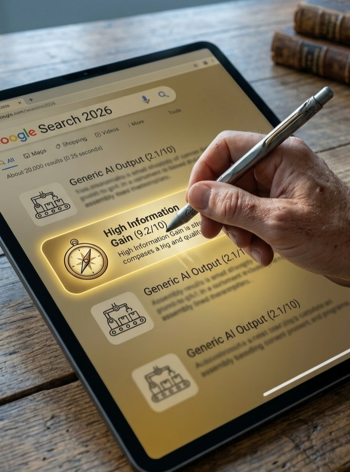 “Google in 2026: Prioritizing ‘High Information Gain’ from human experience over generic AI outputs.”